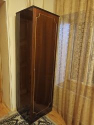 - Ayrıca 2 ədəd dar, hündür şkaf (vitrin/kitab/paltar üçün uyğun) – tünd qəhvəyi parlaq səth, qızılı kontur işləmələri ilə