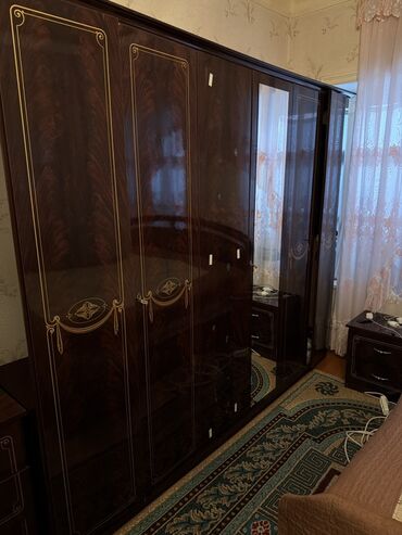 Yataq otağı mebel dəsti Real alıcıya endirim olnacaq Tərkibi: - 3 qapılı iri paltar şkafı: iki yan bölmə asılqanlı, mərkəzdə rəf və 3 dərin çəkmece; dekorativ naxışlı fasad, tünd-qəhvəyi və açıq q...