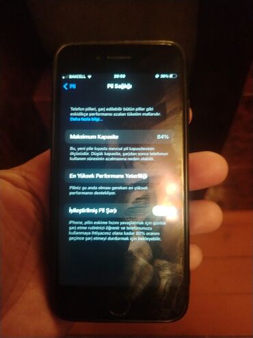 - Batareya: “Battery Health” göstəricisi – Maksimum tutum 84%, “Peak Performance Capability” aktivdir, Optimized Battery Charging açıqdır