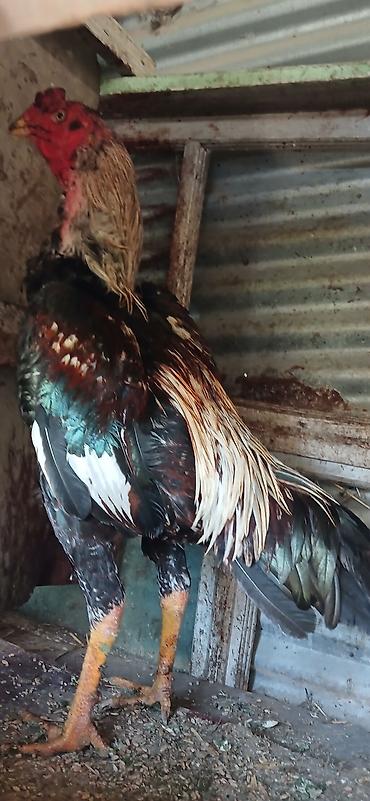 Məhsul: Gənc döyüş tipli xoruz (Aseel/oxşar xətt) Xüsusiyyətlər: - Yaş: təxminən gənc yaş (tam yetkinliyə yaxın) - Rəng: qırmızı-qəhvəyi lələklər, qanadlarda tünd-yaşıl parıltı, quyruqda qara tonl...