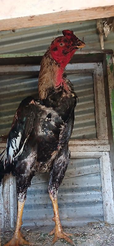 Satsı üçün döyüş tipi xoruz (Aseel/Şamo tipajında). Xüsusiyyətlər: - Uzun, möhkəm bədən quruluşu - Qırmızı-qara lələklər, parlaq qanad örtüyü - Uzun sarı pəncələr və güclü pəncə quruluşu - Kəskin ...