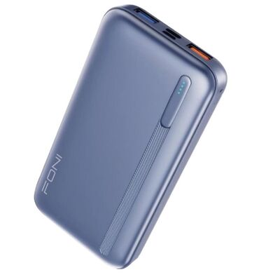 FONI daşınan enerji bloku (powerbank) - Korpus: kompakt və hamar dizaynlı, boz-mavi rəngdə. - Portlar: 2x USB-A çıxışı (rənglərlə işarələnmiş), 1x USB-C portu, 1x micro-USB giriş. - Sürətli enerji...