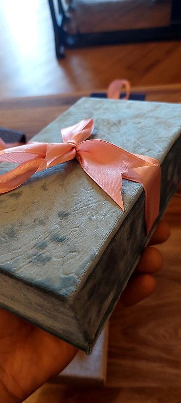 Zinət əşyaları üçün hədiyyə qutu dəsti . Qiymət 2-3-4 azn - 3 müxtəlif model: - Uzun, nazik qutu: tünd boz fon üzərində ağ və çəhrayı nöqtələr, lent və qırmızı qırçın düyün; daxildə qara parçal...