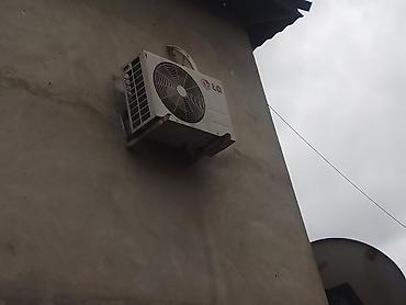 LG split kondisioner sistemi - Brend: LG - Növ: Divara quraşdırılan split kondisioner (daxili və xarici blok) - Xarici blok: böyük ölçülü ventilyatorlu kompressor bloku, LG loqolu - Daxili blok: d...