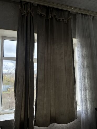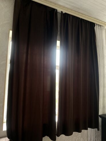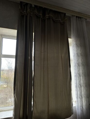 - Komplekt: 2 ədəd tünd qəhvəyi qalın pərdə, 2 ədəd xallı naxışlı bej-qəhvəyi pərdə (üst hissədə püsküllü karniz bəzəyi). Şəffaf tül dəst görüntüdə var.