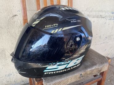 Qeyd: Kaskanın üzərində görünən cızıq və izlər var; vizorda da xətlər mövcuddur. Ölçü işarəsi görünmür, baş dairəsinə uyğunluq real ölçü ilə təyin edilməlidir.