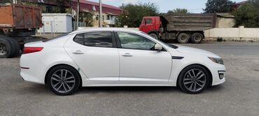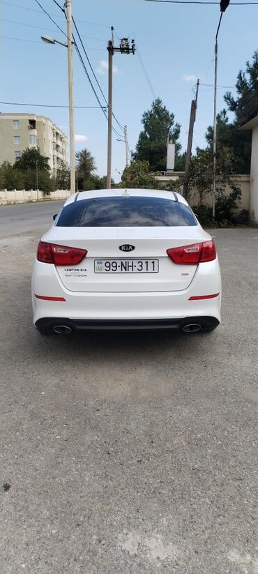 Kia Optima sedan – ağ rəng, AZ nömrə nişanı 90-UE-849. 4 qapılı, ön və arxa parklama üçün geniş görsənmə. 2 egzoz çıxışı, yüngül lehimli disklər, duman faraları, arxa “Optima” və “EX” emblemləri. ...