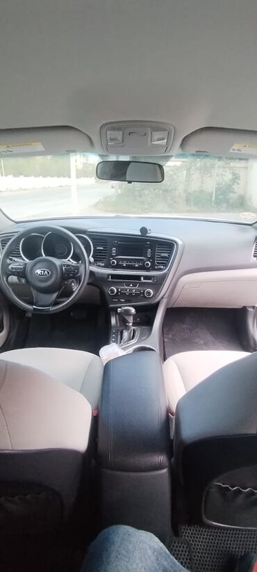 Kia Optima sedan - Kuzov: ağ rəng, 4 qapı, yüngül lehimli disklər - Mühərrik/emblemlər: arxa qapaqda “2.0” və “EX” nişanları görünür - Transmissiya: avtomat (mərkəz konsolda P-R-N-D ardıcıllığı) -...