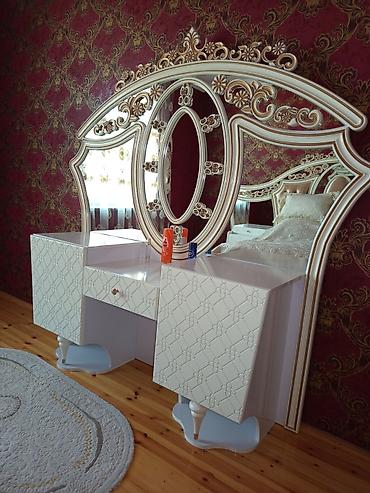 - 1 ədəd tualet masası və güzgü – iri oval və yan dekorativ güzgülər, ortada çekmece, iki yan şkaf bölməsi