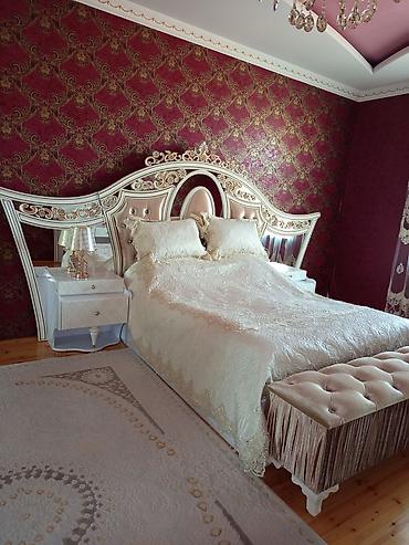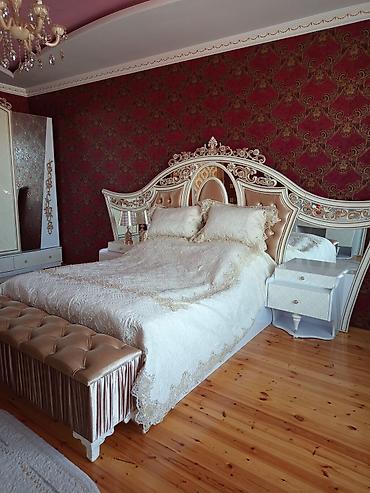 - 1 ədəd ikinəfərlik çarpayı – dekorativ qızılı naxışlar, yumşaq süni dəri başlıq, hündür ornamental başlıq konstruksiyası