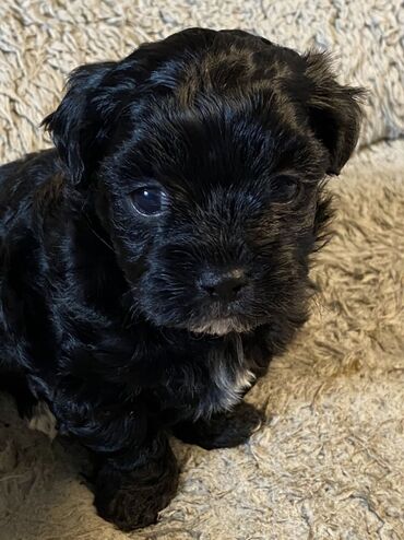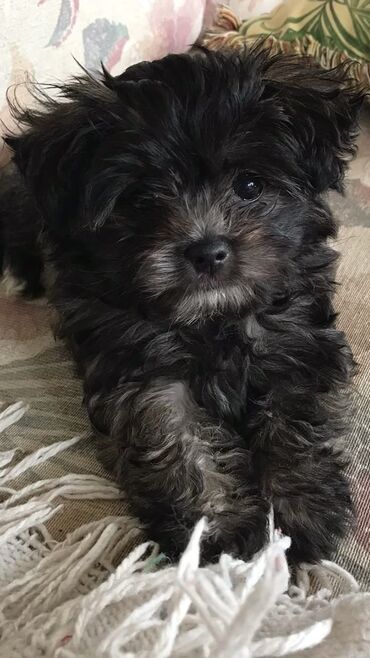 Miniatür ölçülü, tüklü, qara rəngdə Toy Maltipu balalari iki ayliqdilar vaksinleri vurulub tam saglam balalardi.