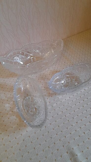 3 ədəd Xrustal qablar.Hər biri-7azn. Ölçüsü:Eni-14sm