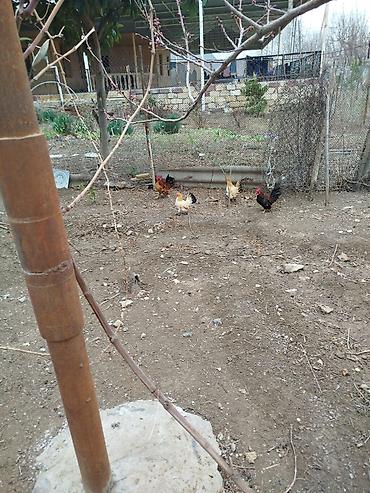 - Şəkillərdə olan ev quşları: bir neçə ətirli rəngdə dekorativ toyuq və xoruzlar.