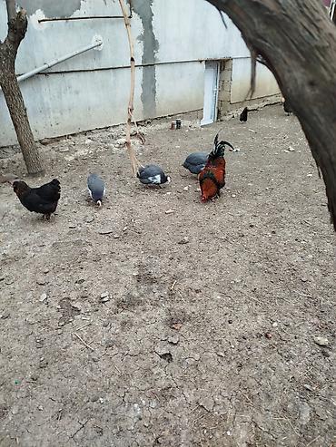 - Növlər: müxtəlif rəngli toyuqlar və horoz, həmçinin 3 ədəd helmetli firəng toyuğu (boz, ağ ləkəli).