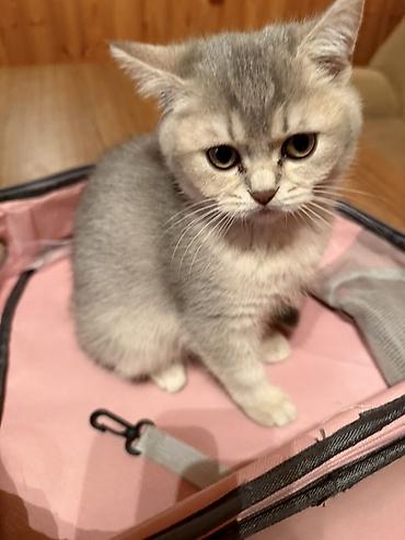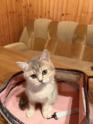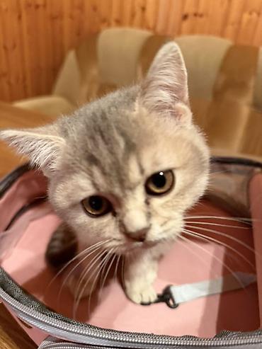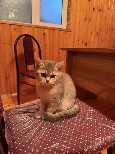 Britiş Şorthair gümüş-şabalıd rəng çalarlarında tüklü balaca pişik balası.
