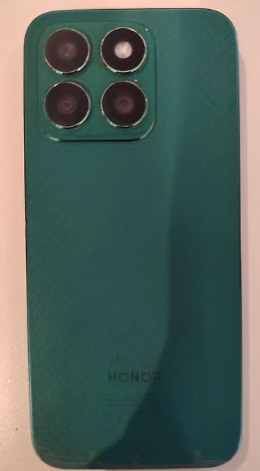 Ümumi məlumat (şəkilə görə) Marka: HONOR Rəng: Yaşıl (green / emerald ton) Arxa kamera: Kvadrat blokda 4 kamera dizaynı LED flaş var Ön tərəf: Tam ekran, nazik çərçivələr Ortada ön kamera (hole-pun...