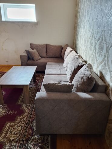 - Forma: L şəklində künc divanı, geniş oturma sahəsi ilə.