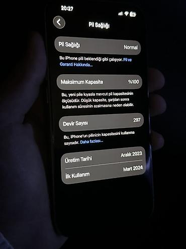 15pro 128gb 88%pil.Telefon ideal veziyyetdedir yeniden seçilmir, Temirde olmayib ureyiniz harada istese yoxlatdira bilersiniz nökte bele ciziği yoxdur.Üzerinde karobkasi,adapter bașlığı,Usb ve kabu...