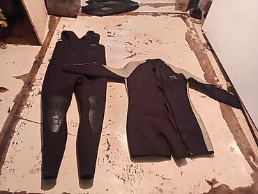 - Neopren kostyum: iki hissədən ibarət qalın wetsuit (yuxarı hissə ön fermuarlı, alt hissə qolsuz kombinezon); diz hissələri möhkəmləndirilmiş qoruyucu yastıqlarla