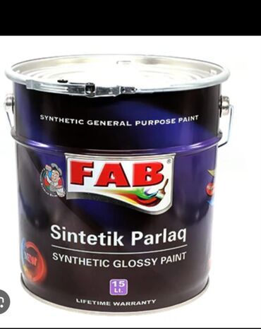 - FAB Synthetic Glossy Paint – sintetik əsaslı, yüksək parlaqlıq verən ümumi təyinatlı boya. Qablaşdırma: 15 litr. Uzunömürlü parlaq səth, metal, taxta və digər səthlər üçün uyğundur.