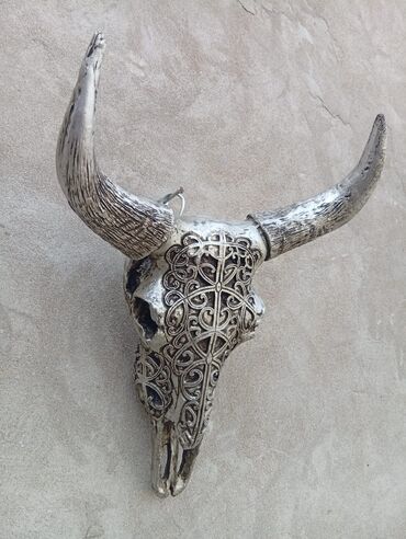2) Bəzəkli öküz kəlləsi – buynuzlu forması və ön hissədə ornamental naxışlar; boho/vestern/etnik interyerlərə uyğun.