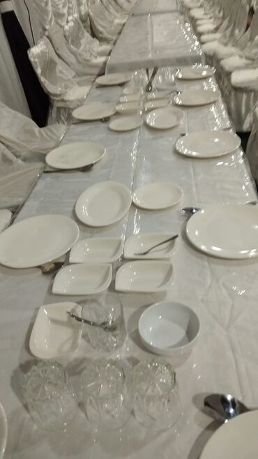 - Süfrə ləvazimatı: ağ porselen boşqab və nimçələr (fərqli ölçülərdə), şorba qabları, qaşıq-çəngəl, şüşə stəkanlar, mizin ortası üçün kiçik qablar