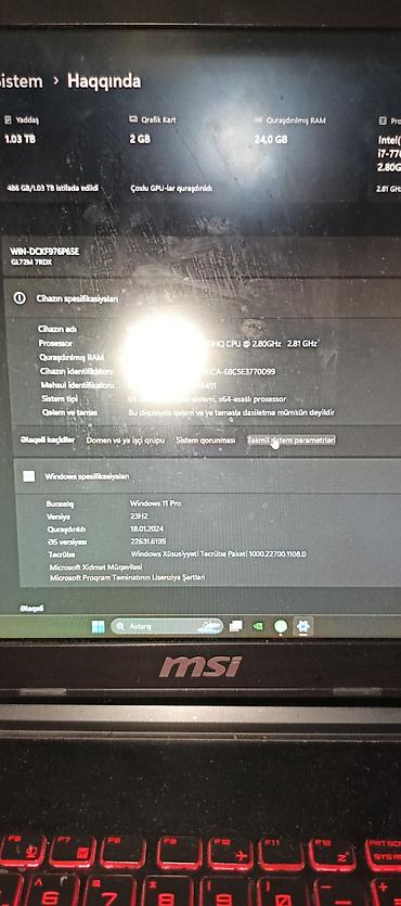 - Əməliyyat sistemi: Windows 11 Pro, versiya 23H2