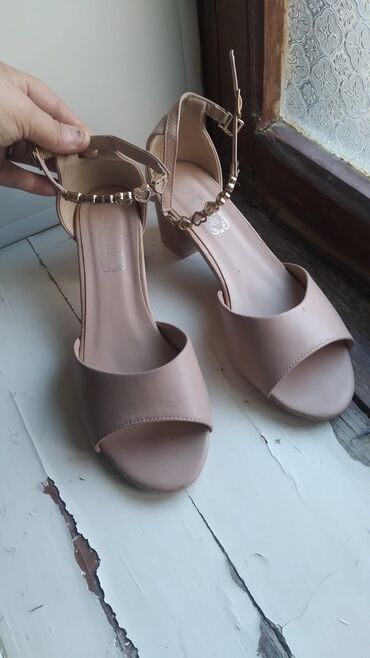 Məhsul: Qadın tufliləri və açıq burunlu sandal heç geyinilmeyib - Rəng: Açıq pudra/çəhrayı - Material: Parlaq lak effektli üst (süni dəri), hamar içlik - Ölçü: 38 (etiketdə “38” qeyd olunub) - Mode...