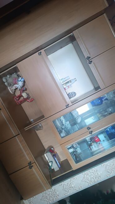 Mebel divar dəsti – vitrinli və çoxfunksiyalı - Material: ağac