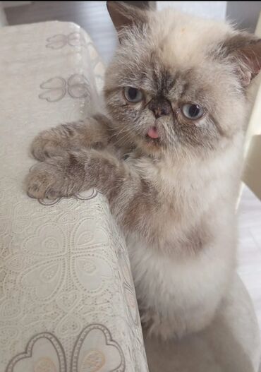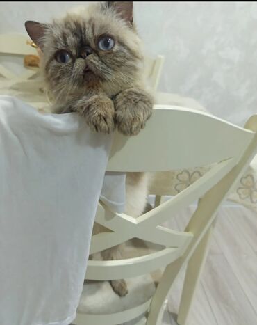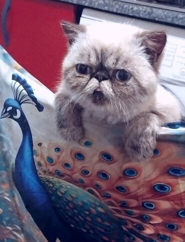 1 yaşl var. 1 həftə qabaq baytar baxıb qurd dərmanı verub, peyvəndi olunub. Qırxılıb. Bu qiymətə belə pişik heç yerdə yoxdur. Qısır deyil. Erkəkdi. Qiymət salmaq üçün müraciət etməyin. Eksot qısa tüklü pişik – unikal görünüşlü, böyük yuvarlaq gözlər, basıq burun və yumşaq, qalın tük örtüyü. Rəngi krem-qəhvəyi tonlarda, pəncələr və maska daha tünddür. Sakit və mehriban xasiyyətlidir, ev şəraitinə tez uyğunlaşır, qucağı və sakit oyunları sevir. Digər heyvanlarla və uşaqlarla rahat ünsiyyət qurur.