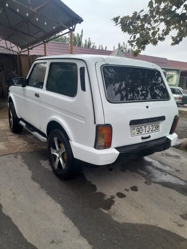 Lada Niva 4x4, ağ rəngli, 3 qapılı SUV. Xüsusiyyətlər: - Tam ötürmə