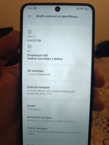 - OS versiyası: 2.0.202.0.VMGRUXM (MIUI/HyperOS bölməsi)