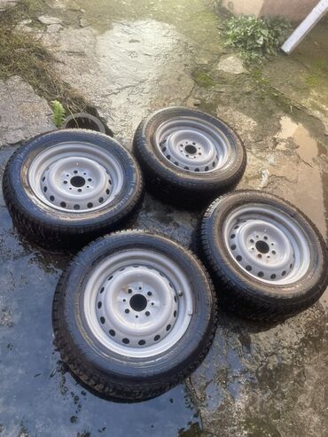 Satılır: 2 ədəd komplekt təkər+disk qar təkərləri 0706086880 - Disk: qara rəngdə ştampovka (polad) disk, 4 bolt deşikli, mərkəz dəliyi standart. - Təkər: qış protektorlu şin, dişləri dərin, prote...