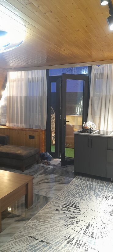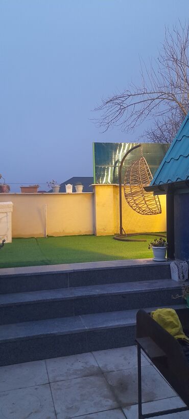 - Şəxsi həyət: süni ot örtüyü, yelləncək kreslo, pilləkənli terras, dekorativ güllüklər