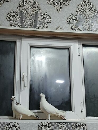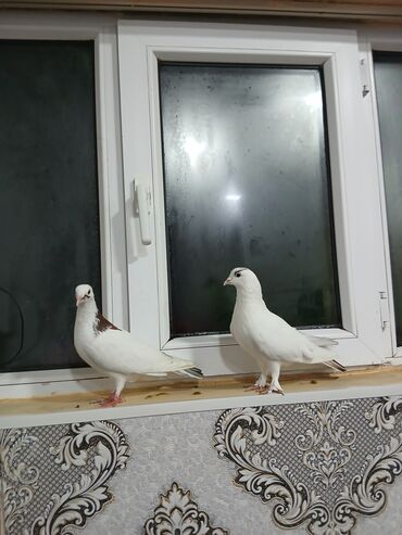 Ev göyərçinləri – cüt - Cins/Tip: Ev göyərçini (ikili cüt) - Rənglər: biri tam ağ, digəri tünd-qara/boz qarışıq - Gözlər: parlaq, simmetrik quruluş - Gaga: qısa və düz - Ayaqlar: çəhrayı-qırmızı, ...