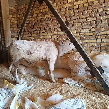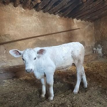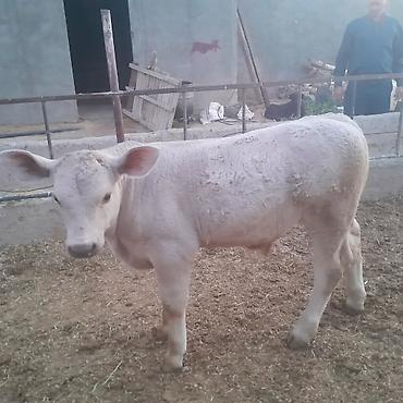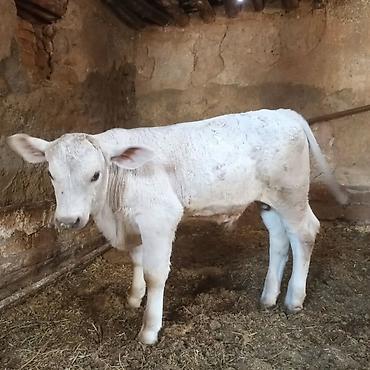 Satişda: ağ rəngli buzov - Növ: mal-qara, buzov - Rəng: açıq krem/ağ