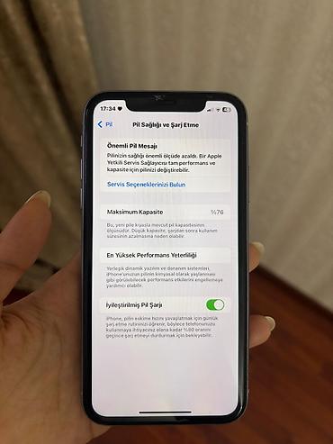 Vəziyyəti yaxşıdır.Heç vaxt ustada olmayıb Ekran,Batareya,Zaryadka yeri və s. heç biri dəyişilməyib.Batareya 77%.Kamera,Face ID və sensor tam işlək vəziyyətdədir.Sadəcə bir problemi var işıq işarəs...