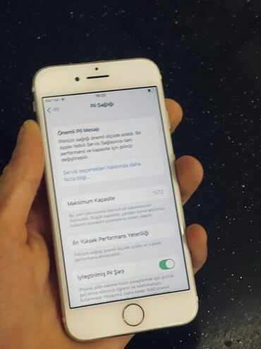 - Batareya: “Pil Sağlığı” bölməsində maksimum tutum 72% göstərilir; “En Yüksek Performans Yeterliliği” aktivdir; “İyileştirilmiş Pil Şarjı” açıqdır