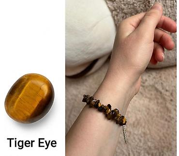 Təbii daşlardan hazırlanmış elastik bilərziklər dəsti - Material: cilalanmış təbii daş qırıntıları, elastik ip - Növlər: 1) Qızılqum (goldstone) – isti tünd-qəhvəyi rəng, səthində intensiv parıl...