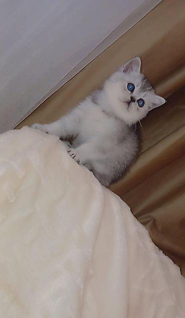 - Cins: Britan tipli (qısa tüklü görünüş, yumru baş və iri mavi‑boz gözlər)