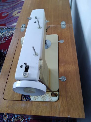 Ev tikişi, təmir və sadə konstruksiyalar üçün klassik mexaniki tikiş sistemi. Taxta şkaf işi rahatlaşdırır və aksesuarları səliqəli saxlayır.