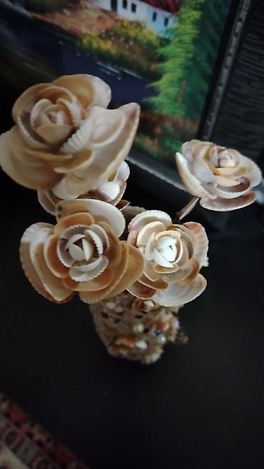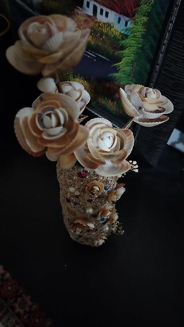 Dəniz qabıqlarından hazırlanmış dekorativ kompozisiya – süni güllərlə. Xüsusiyyətlər: - Silindrik forma, gövdəsi təbii dəniz qabıqları ilə sıx şəkildə bəzədilib. - İçəridə süni yaşıllıq və çiçəklə...