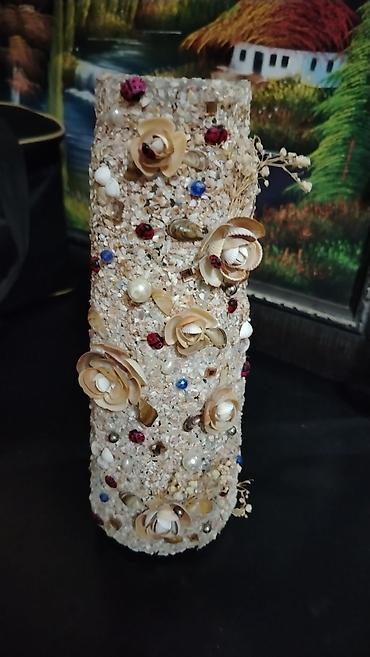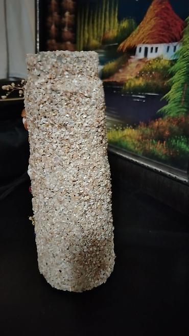 Dəniz üslublu dekorativ güldan Gülərin cütü 5 manat - Silindrik forma, təxminən stolüstü ölçüdə - Üzəri xırda dəniz daşları və qum teksturası ilə tam örtülüb - Tətbiq olunmuş bəzəklər: təbii ilbiz ...