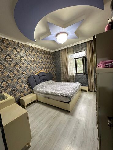 - Laminat döşəmə, divarlarda dekorativ oboy, ağ rəngli qapılar və plintuslar