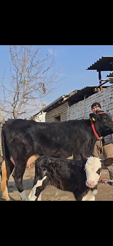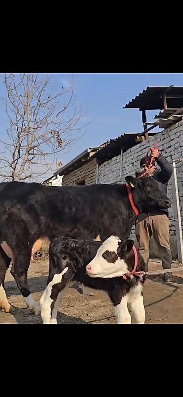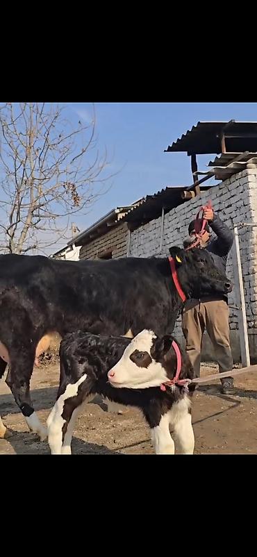 Südlük inək və bala - Ünvan: Sumqayıt - Südvermə: gündə 10 litr - 4 aylıq bala verib - Erkək balalayla - Yanındakı bala 2-ci balasıdır - 2 aylıqdan boğazdır, 3-cü balaya - Çox rahat, sakit heyvandı...