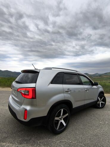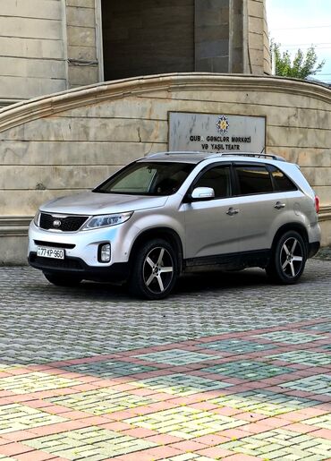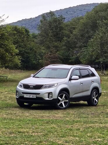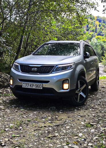 Kia Sorento LX – qara rəngli, şəhər və yolsuzluq üçün rahat və geniş krossover. Xüsusiyyətlər: - Kuzov: 5 qapılı SUV, dam relsləri - Rəng: qara, xrom ön barmaqlıq - Salon: geniş interyer, ön mərkə...