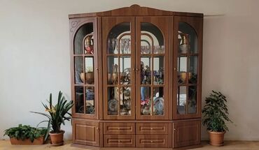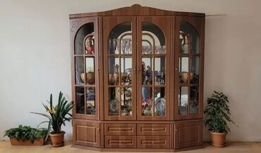 - Dizayn: orta hissəsi yuxarıda tağ formalı dekorla vurğulanmış 4 qapılı şüşə vitrin