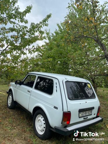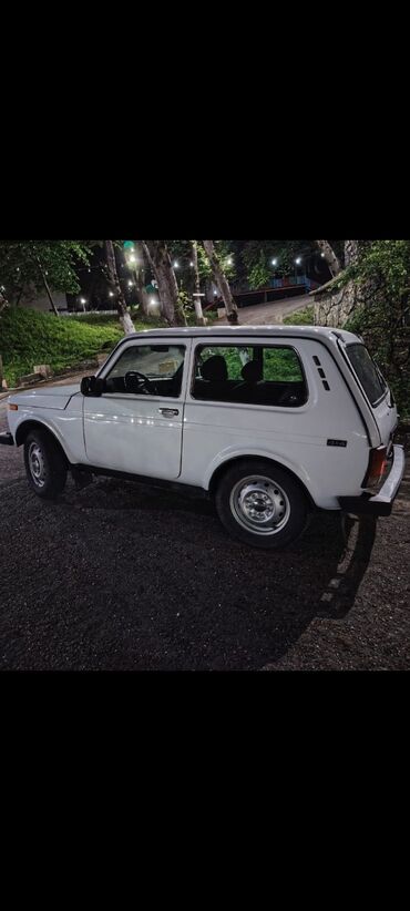 Lada Niva 4x4, ağ rəngli, 3 qapılı SUV. Texniki xüsusiyyətlər və detallar: - Tam ötürücü (4x4) transmissiya - Mexaniki sürətlər qutusu - 1.7 benzinli mühərrik (modelə xas klassik Niva motoru) - Or...