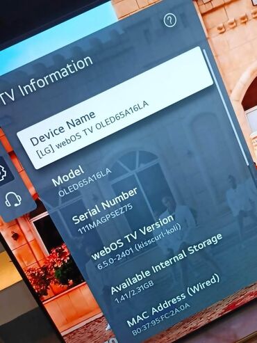 - Model: OLED65A16LA (TV məlumatlarında görünür)
