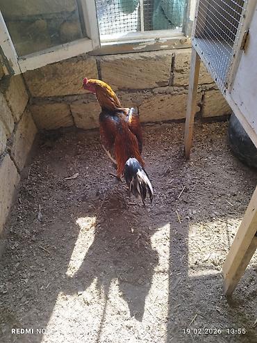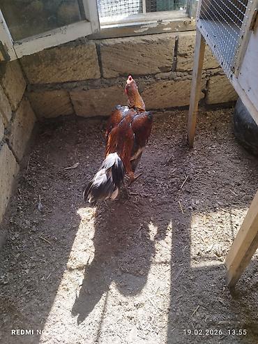 Məhsul: Xoruz saglam heyvandı xoruzdu boş boşuna narahat etmiyin Təsvir: - Rəng: qırmızı-qəhvəyi bədən, qara quyruq lələkləri, parlaq qırmızı ibik və saqqal - Cins növü: yerli kənd tipi (kiçik-gö...